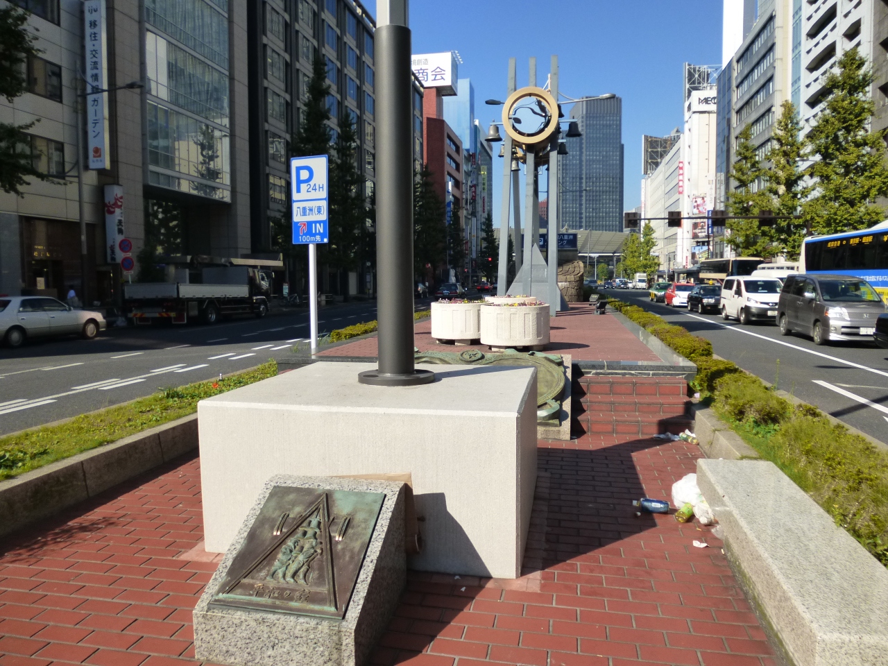 「中央通り」と「八重洲通り」が交わる場所に「平和の鐘」があります。