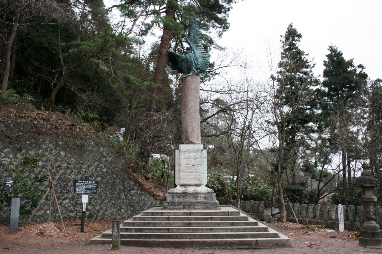 白虎隊自刃の地である飯盛山にローマ市が寄贈した碑が立っています。これがなんとベスピオス火山の噴火によって滅びたポンペイの廃墟から発見された古代神殿の柱なのです。本来、ローマの博物館で展示すべき貴重なものだと思うのですが、この場で雨ざらしにしておいていいものなのでしょうか。