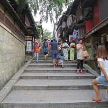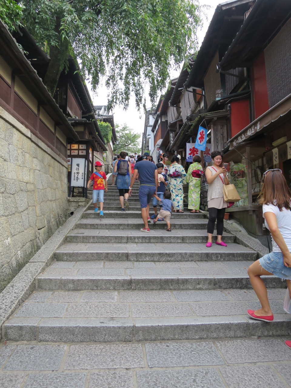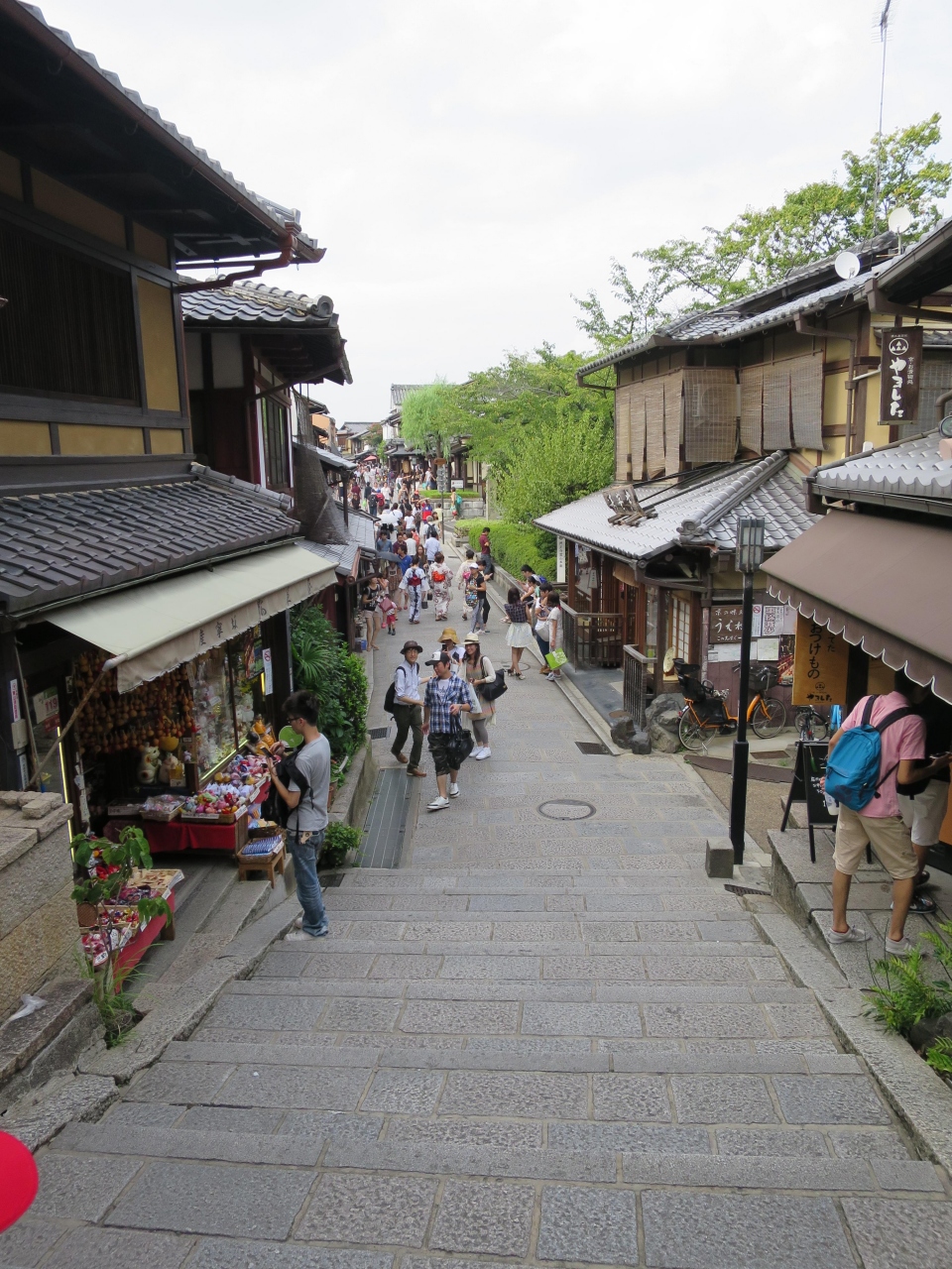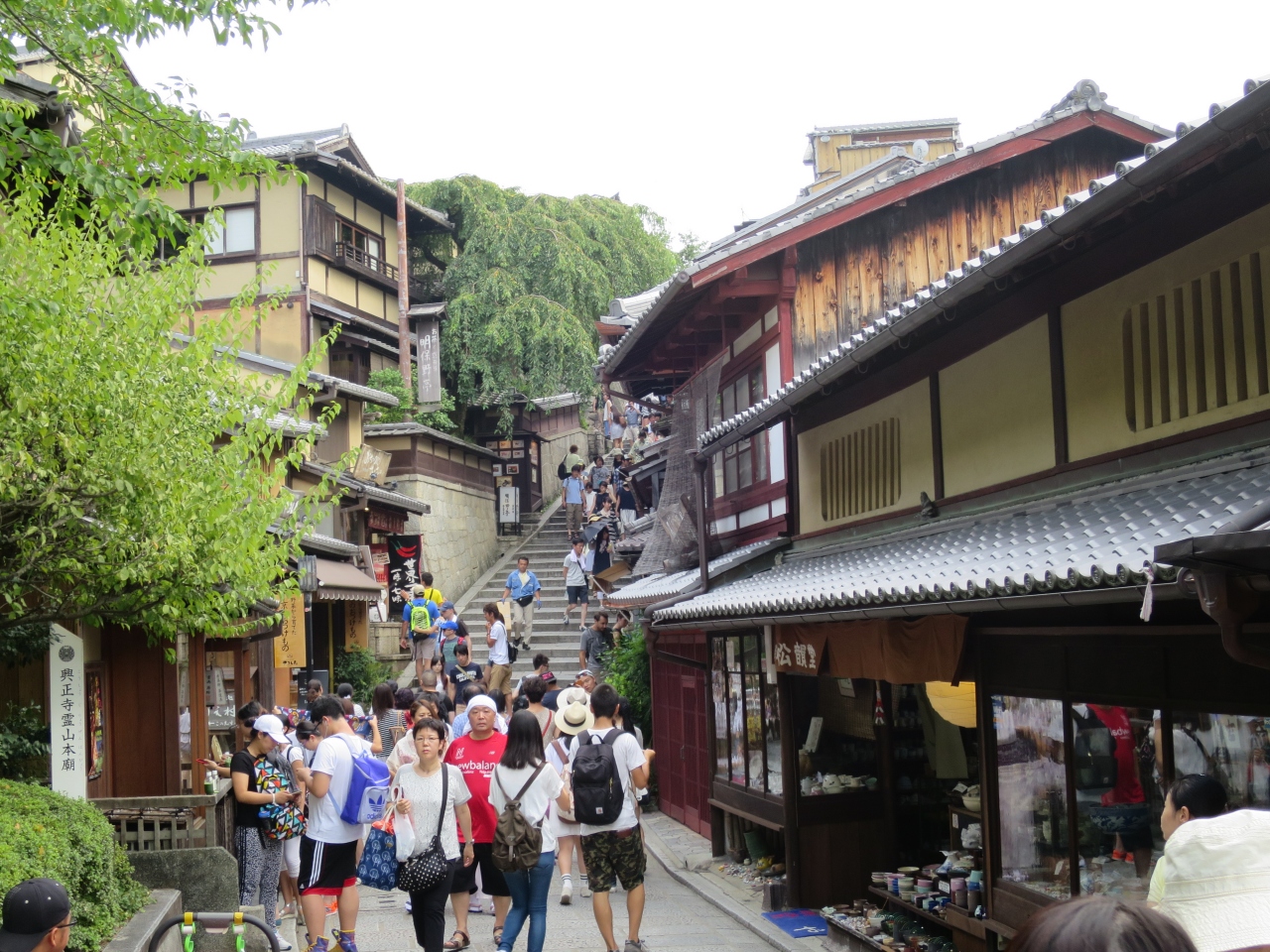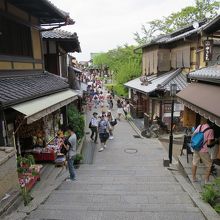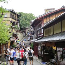 京都 東山にある八坂神社から南に下った先の清水坂に上る石段のある坂で、土産物店などが並び、また、風情ある街並みでとても観光客に人気のある場所です。