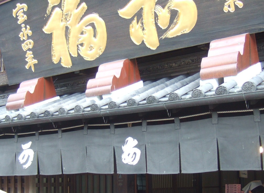 赤福本店はその伊勢らしい切妻屋根が実にいい雰囲気ですね。いつもおみやげを買う人でにぎわっています。中で赤福のイートインもできますし、かき氷などもあって美味しそうです。伊勢神宮の参拝時間に合わせて朝の5時から店を開けているというのもすごいですね。赤福餅が好きなので、実家への御土産に買い求めようとしましたが、残念ながら日持ちがしないので今回はパスしました。