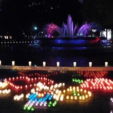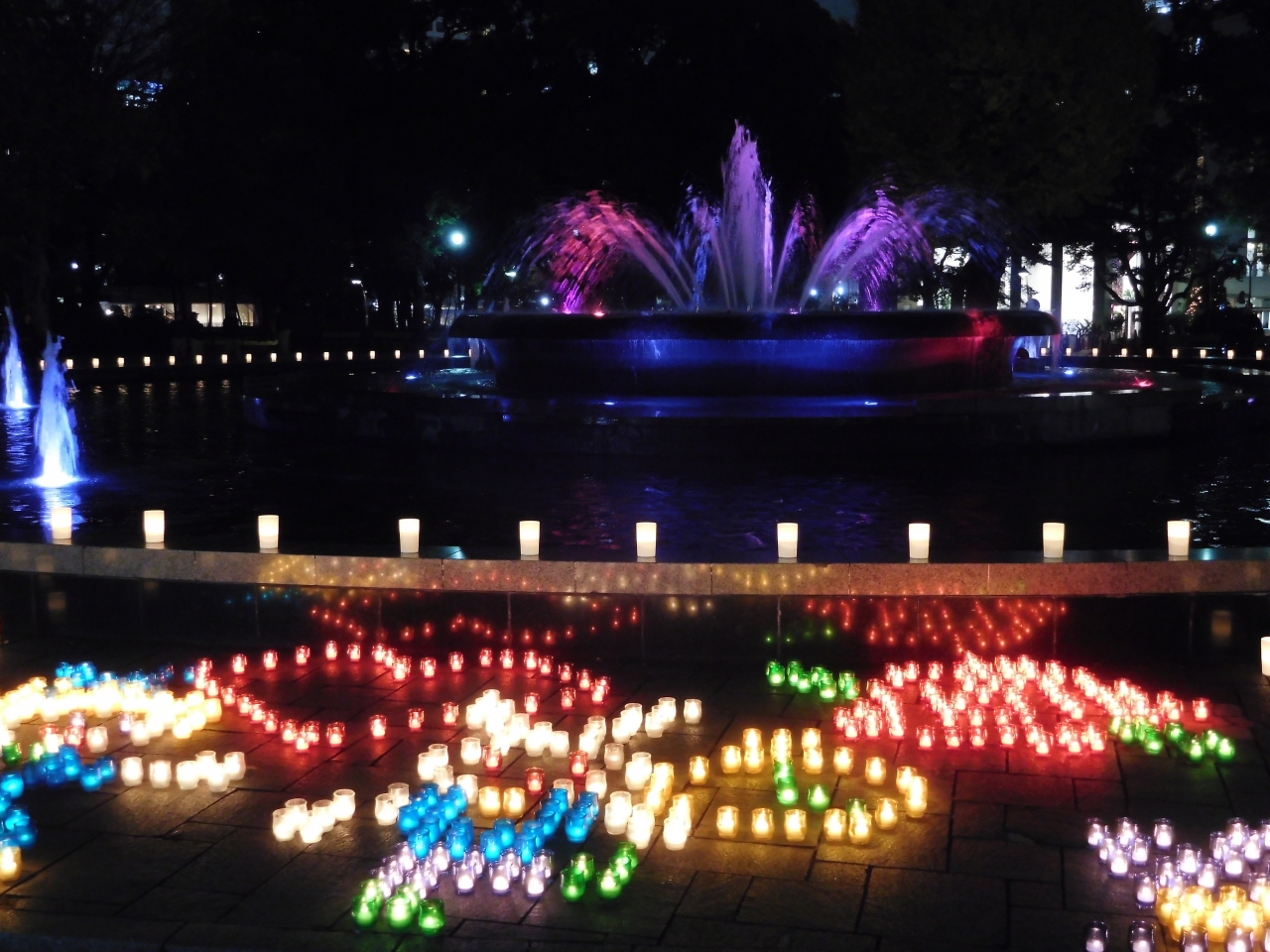 日比谷公園の中心にある噴水で、周囲には広場があります。年間を通して、この噴水付近で様々なイベントが催されています。毎年恒例のイベントとなったキャンドルによるライトアップ「HIBIYA AKARI TERRACE 2015」を見に行ってきました。大噴水を中心に、キャンドルのライトが灯されて、いつもとは違った幻想的な光景が広がっていました。