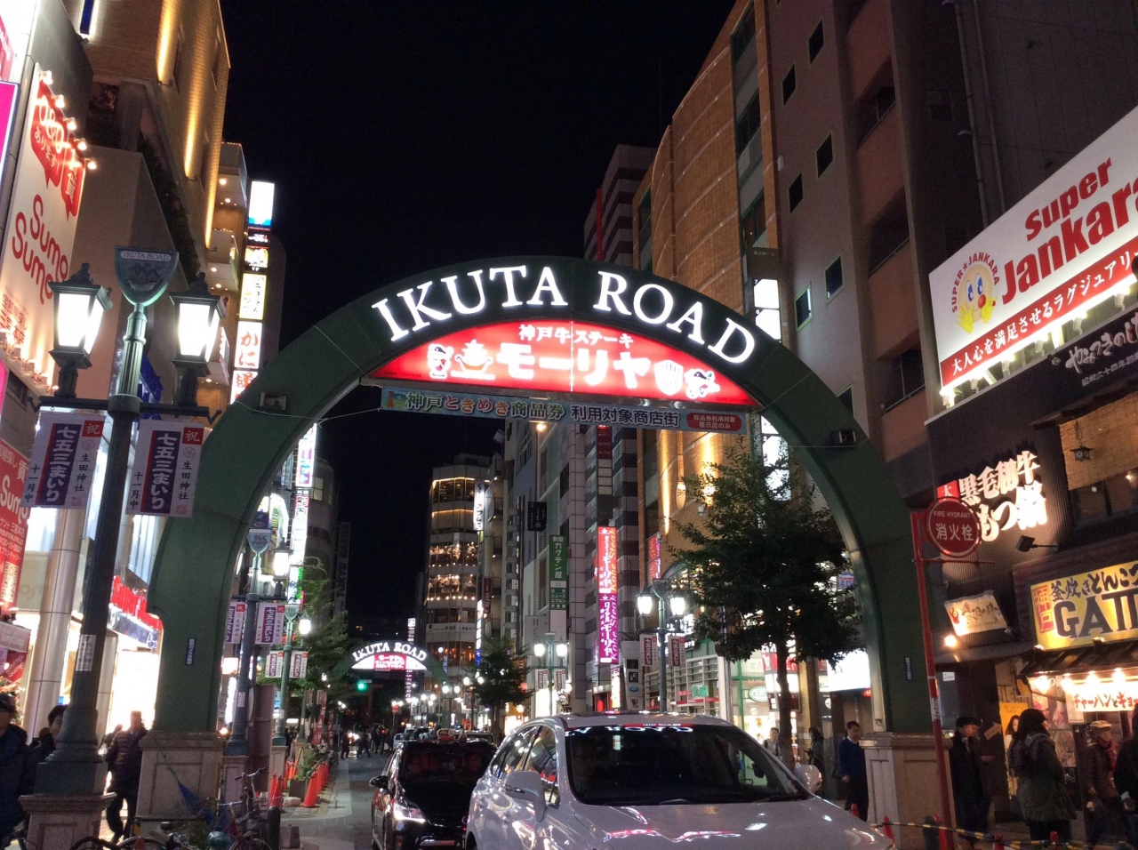 三ノ宮駅周辺には幾つかの“通り”が存在しますが、その中のひとつ。生田神社に向かって真っ直ぐのびています。通り沿いには、様々な飲食店などが軒を連ねます。神社に一番近いエリアに行くと“おねえちゃん系のお店”が増えてきます。