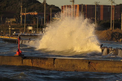 逆光で撮影すると、シルエットが犬のお座りの形に見えますが、これが大自然の波による浸食でできたとは思えないような見事なものです。