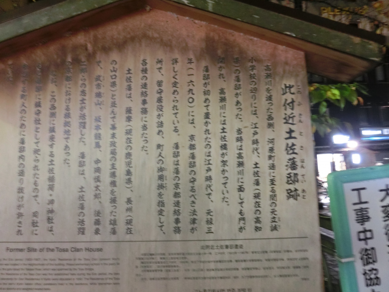 高瀬川べりに高札だけ