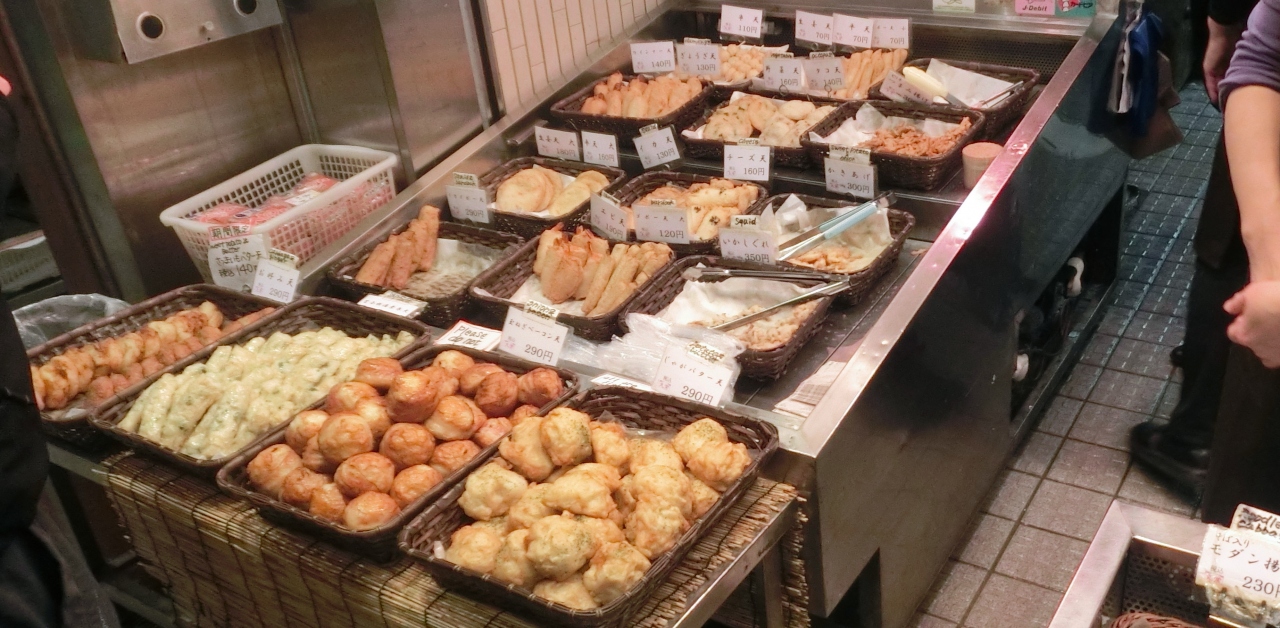 かまぼこも売っているが、店先に並べられているさつま揚げ(京都ではどう呼ぶのか分からないが)が、食欲をそそる。