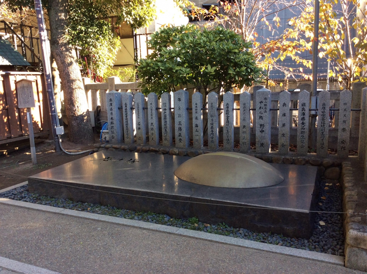 生田神社の境内の一角にあります。料理に携わる人達の魂の籠った庖丁に感謝すると共に、食文化の向上を願い、皇太子殿下御成婚・第61回神宮式年遷宮の記念事業として神戸市内の料理食品関係者によって建立されました。同じような塚が東京の上野にもあったと記憶しますが。