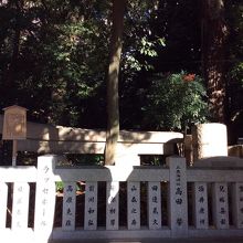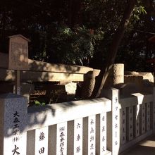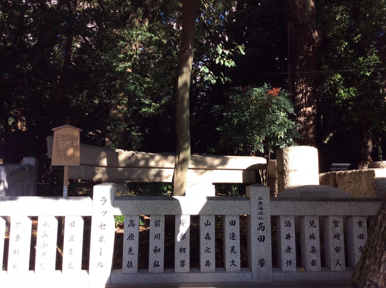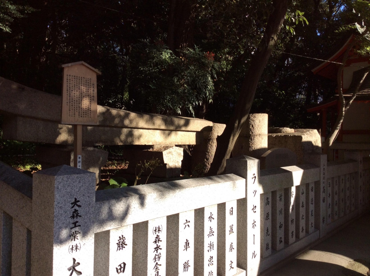 生田神社の奥のさざれ石の後ろにあります。この鳥居は江戸時代初期に建立され、安政元年(1853年)の大地震で支柱を残して崩壊してしまった。支柱が道路脇にあって「生田の折鳥居」と名付けられ、「交通安全に御利益あり」として信仰されたが、以後支柱の一本は生田の森に、もう一本は金星台に移転され、今日に至っている。礎石は昭和54年に道路工事の際に出土したものである。重量約5トン。