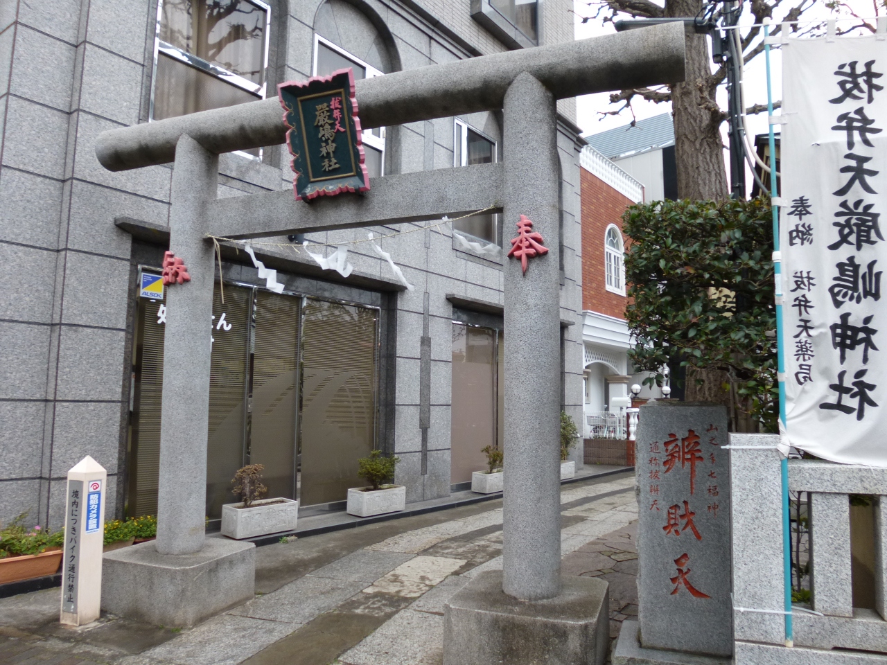 「抜弁天」の通称で親しまれている「厳島神社」には、山之手七福神の弁財天が祀られています。大久保通りと余丁町通りの双方に面し、道行く車の中からもその姿を拝むことが出来ます。大きな神社ではありませんが、印象深いものがあります。