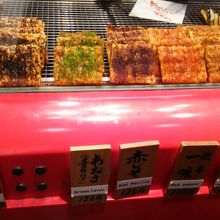 店頭でおせんべいを焼いていて、焼き立てをいただけます。