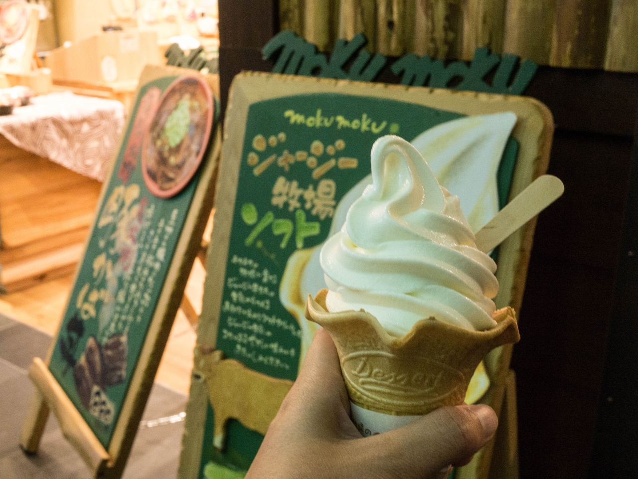 ご飯を食べた後、少しだけ甘いものが食べたくてセントレアを散策していた時に、モクモクファームのソフトクリームが目に付いてお店に入りました。