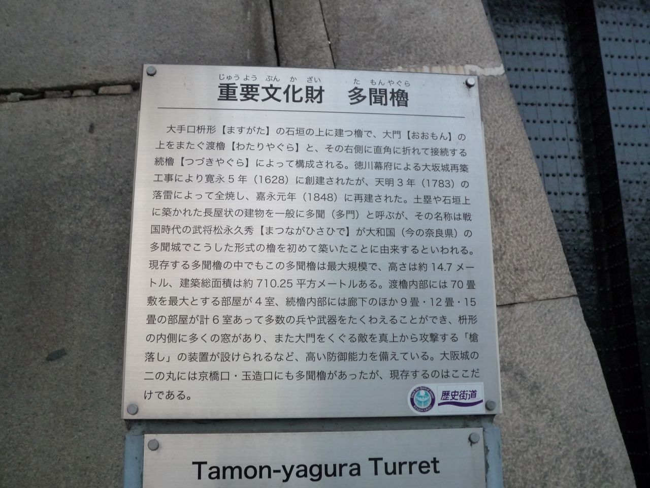 そのため、現在では大阪城内の多聞櫓はここのみです。