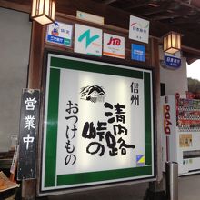 清内路にあるお漬物屋さんです。団体観光客が立ち寄る場所に設定されているようで、私が利用した日も沢山のバスが並んでいました。すべての漬物が試食できるようになっており、お菓子や地場の名産品なども少しながら並んでいました。