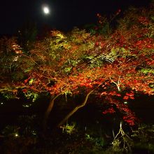 紅葉シーズンだけあって混んでいましたが、月もちょうど満月で紅葉との景色がとてもきれいでした。