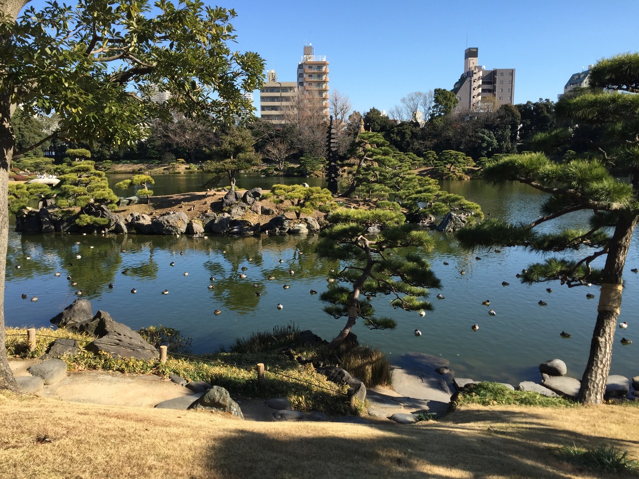 清澄白河駅から数分歩いたところにあります。大人の入場料は150円。大きな池の周りに整備された花や植木が植えられています。池の中には鴨や鯉がいて餌やりも可能です。平日のこの辺りは静かで、のんびりするには最適です。