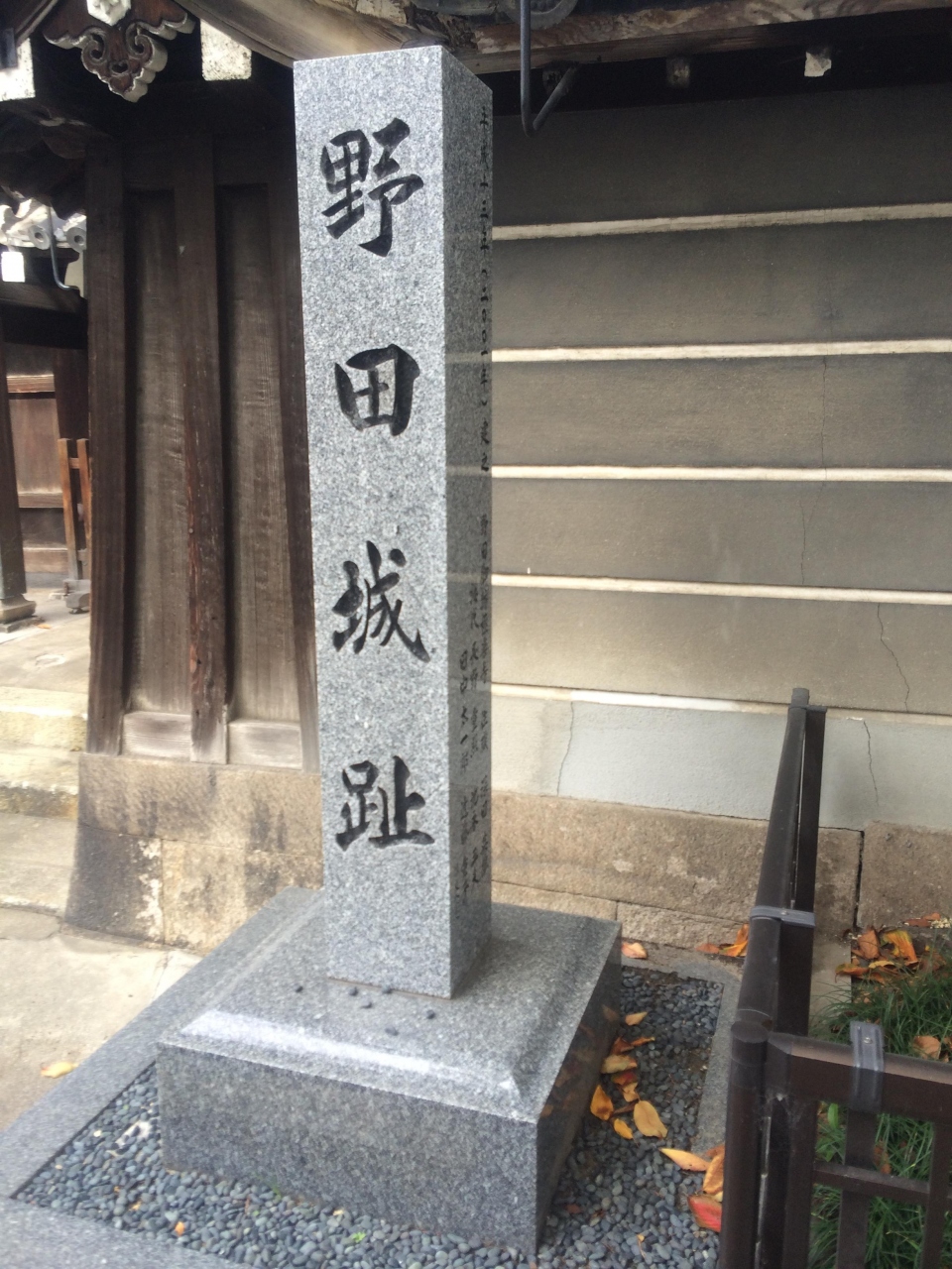 JR野田駅から徒歩10分位の住宅地の中にあるお寺です。中には入りませんでしたが、立派な山門とその横に野田城跡の石碑があります。戦国時代、このあたりに城郭があったとされていますが、あまり文献が残っていないようで幻の城といわれているそうです。