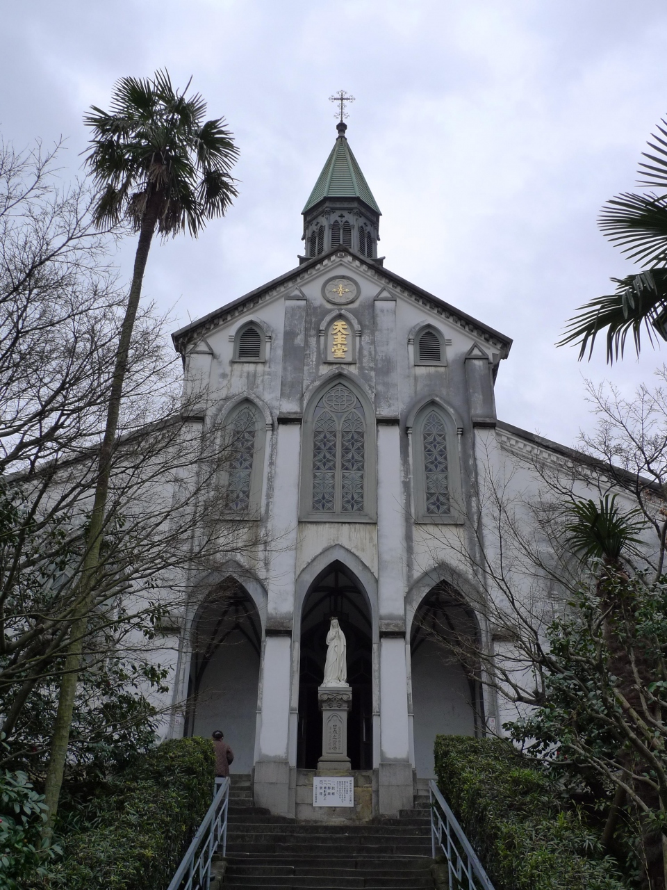 長崎を代表する場所の一つで、修学旅行の定番ですが、大人になってからもう一度訪れると、当時とは違った見方が出来て発見があったり良さを再確認できますね。フランスのゴシック様式の教会は基本的に石造りですが、こちらの天井や柱は木造で、当時建築に携わった方々の技量の凄さが伝わりました。ステンドグラスもきれいでした。心が洗われるような空間でした。