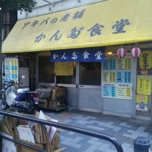 秋葉原駅の電気街口を出て中央通りを北に進み、ちょっと東側に入った道沿いにあるお店です。お店の雰囲気的に長い間営業しているような昔ながらの定食屋さんです。メニューも定食や丼物を中心に数多く揃えているので、メニューで目移りします。