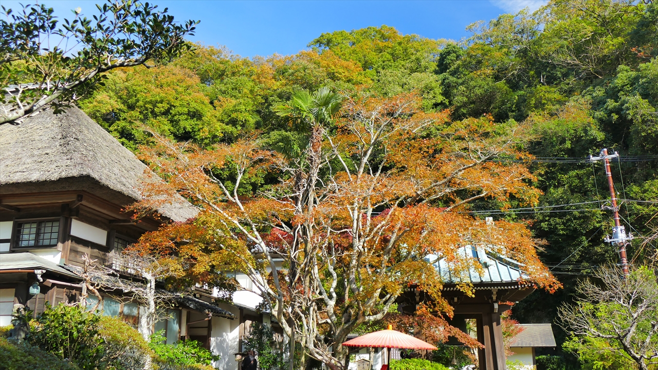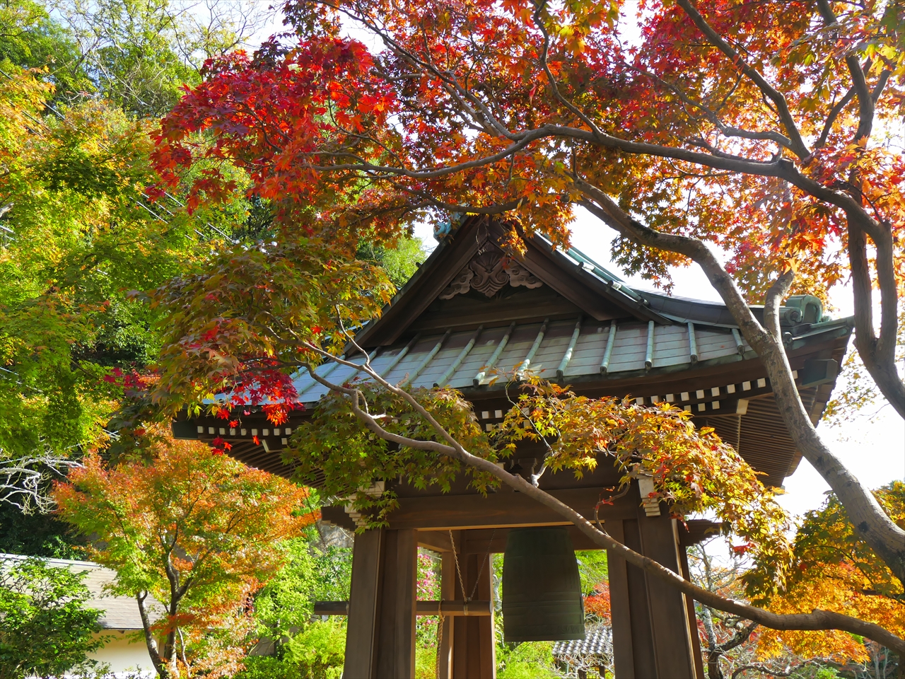 山門前はきれいに紅葉しているのに、よりによって境内のメインの一本だけ紅葉し損ねたのか大部分が赤茶色になっています。こうなると参道くらいしか撮るものがないんですが、人のいない参道の写真を撮るのはかなり厳しい。混むこともないかわりに絶対に途切れない程度にパラパラ人が湧いてきます(笑)
