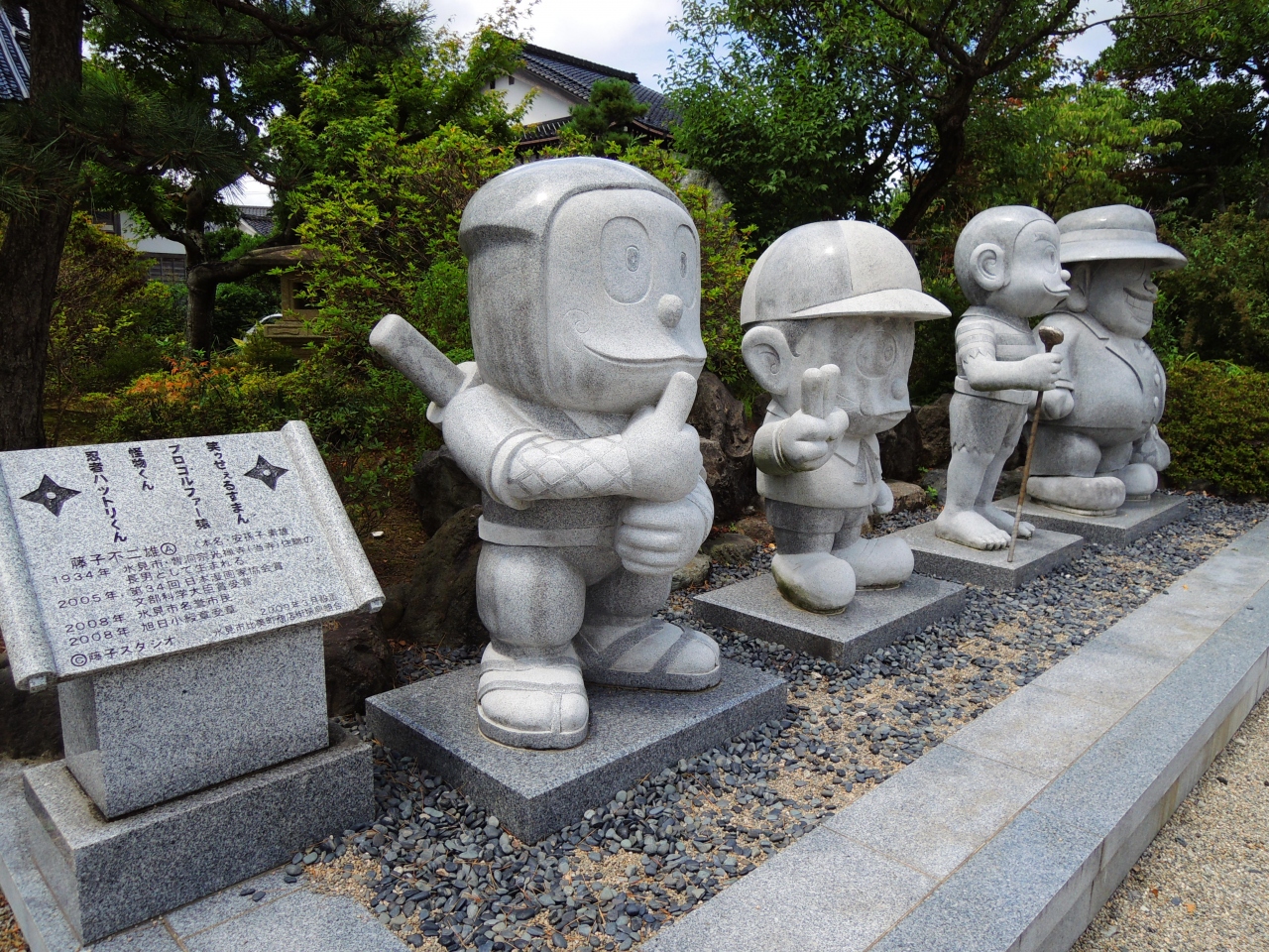 漫画家 藤子不二雄A先生の生家でもある光禅寺はなんといってもハットリくんや「笑ゥせぇるすまん」喪黒福造の石像が立ち並んでいるのが印象的ですね。それも思っていたより意外と大きいのでビックリしました。