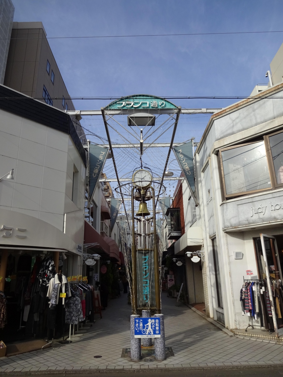 こぢんまりの店が連なる。子供服、婦人服店、バーや画廊なども。