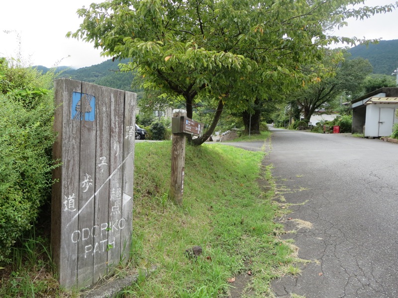 淨蓮の滝のバス停近くに踊子歩道の入口があります。張りきってそこから歩きました。バス道路に並行しているのですが、歩道の方は紆余曲折しているので、結構時間がかかります。歩くのが大好きな人は良いのですが、そうでなければあまり面白くありません。やはり天城峠の近く、水生地下バス停の近くから歩きだすのがお勧めかと思います。