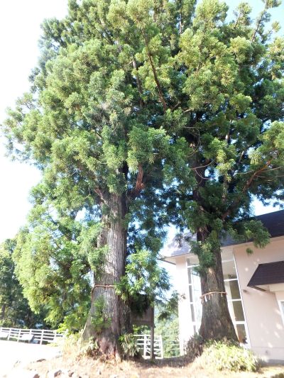 立山杉の巨木やブナ・トチなどの原生林が駅の脇にも向かいにも広がっています。高原バスまで近くを見学して待ちました。いい空気です。