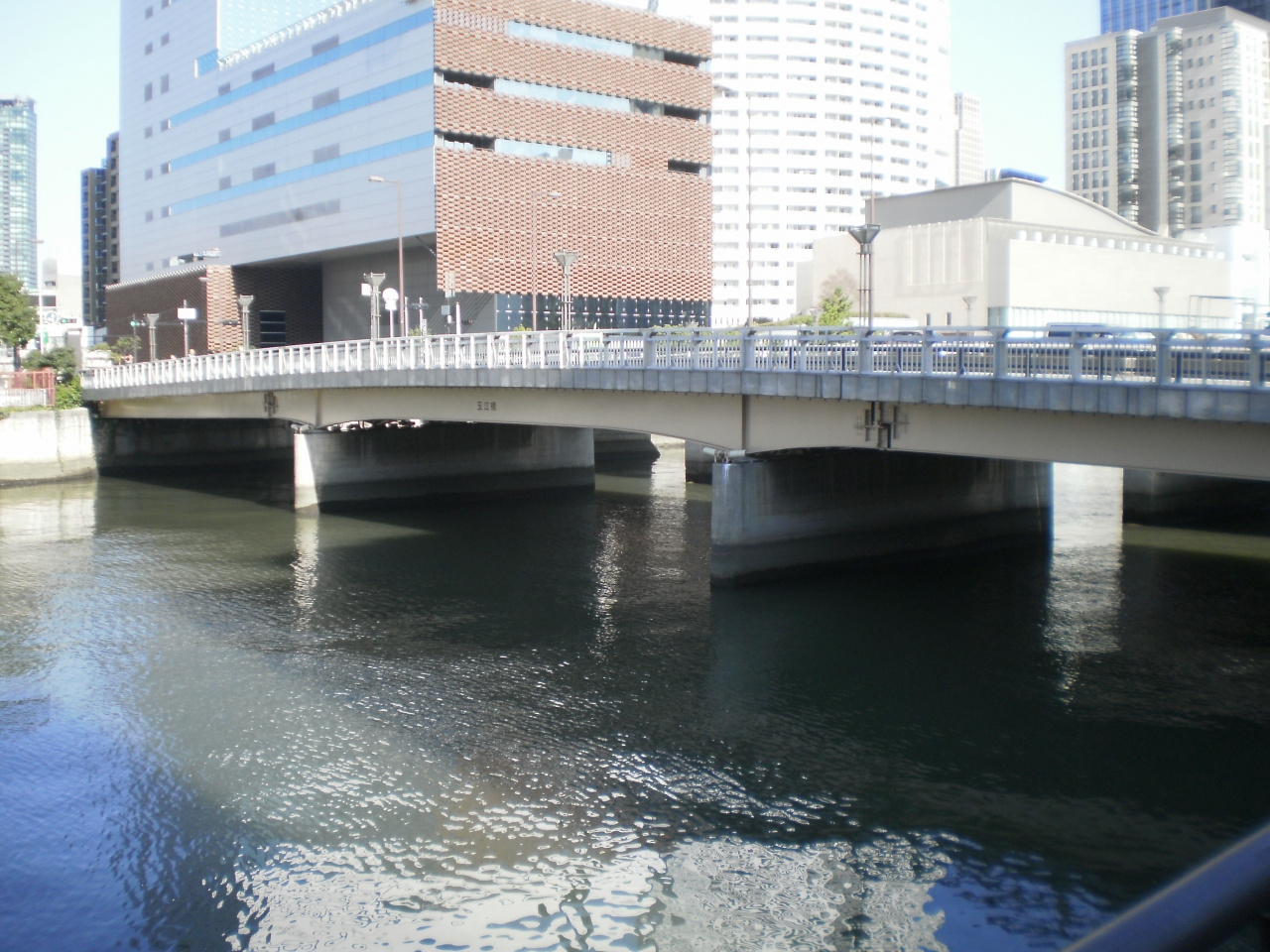 大阪の中ノ島を囲む堂島川に架かる橋の一つです。 近くには堂島川リバーフォーラムという施設があります。夕暮れから夜の時間帯には雰囲気良く、暗くなるとライトアップされます。 川辺にある遊歩道ではジョギングする人を多くみかけました。