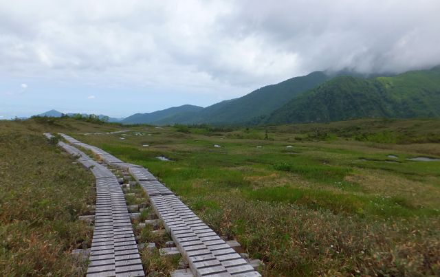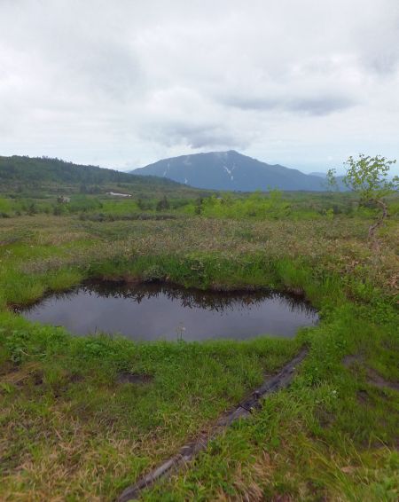 木道が敷かれた湿原には「餓鬼の田」と呼ばれる池塘(ちとう)が点在しています。