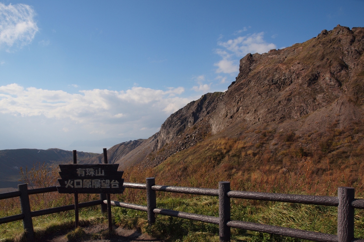 更に左手に歩いて行くと坂を登る形で所用約7分、「有珠火口原展望台」です。
