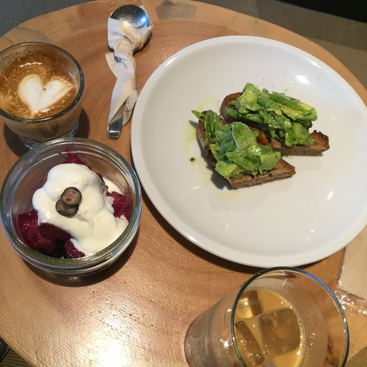 ラテとデザートを注文。プディングみたいなデザート、色が紫のようで変わっていましたが、とても美味しかったです。店内はオシャレでスタイリッシュでした。駅近です。
