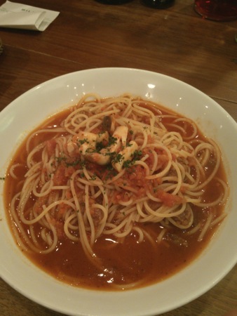 メニューの数がなにげに多いので、毎回注文までにあれこれ悩んでしまいます。この時は牛すじが食べたかったのでその系統を…そうです。神戸グルメの“牛すじ(いわゆるぼっかけ)”がパスタに入っているんです。なのでなにげに地元感もあり、オススメです。味はめちゃくちゃおいしいわけでも、おいしくなくもない、安定した味わいです。この時は少し茹で加減が足りないかな…と個人的に思いました。