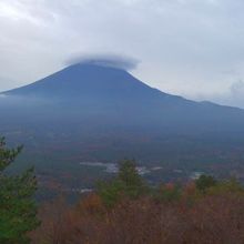 ドライブインに入り、観覧料150円を払うと、展望台に上がれ、360°の展望です。真正面に富士山。その手前に青木ヶ原樹海。本栖湖と西湖も見えます。