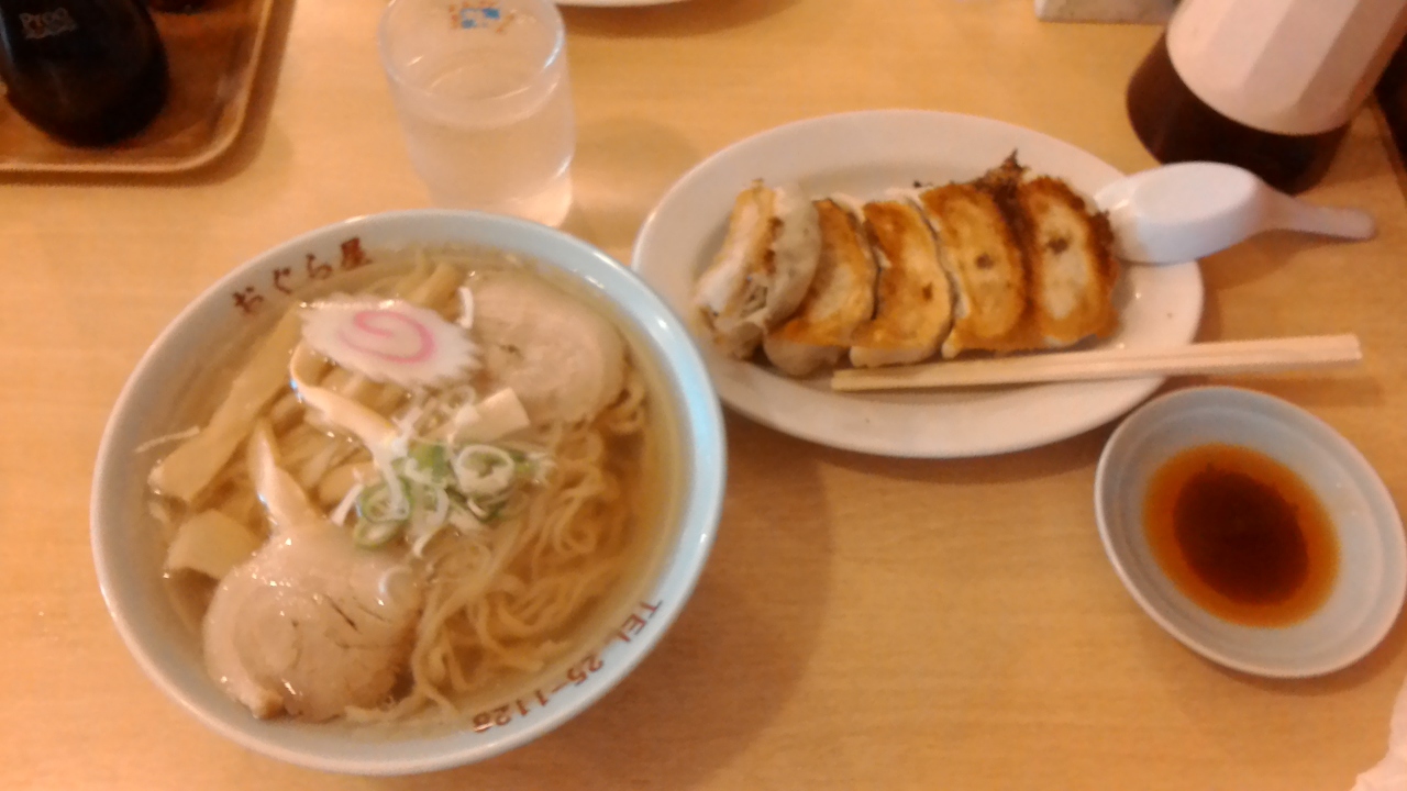ラーメンは佐野ラーメン独特の平打ち麺で、スープを吸いやすく餃子と交互に食べたら麺が伸びてしまいました。スープはあっさりで女性でも食べやすいです。それよりも餃子が大きくて皮も中の餡もとっても美味しかったです。