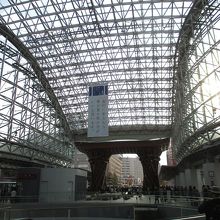 その東口にあるのが、駅ビルから「金沢の顔・鼓門」までをすっぽり覆う、鉄骨で出来た大きなガラス張りのドーム「もてなしドーム」