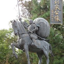 豊臣秀吉が従えた「五大老」のひとり、前田利家を祀る神社で、境内には馬にまたがった大きな銅像が立ち、また利家がかぶっていたという「金色の派手な兜」なども展示中でした。