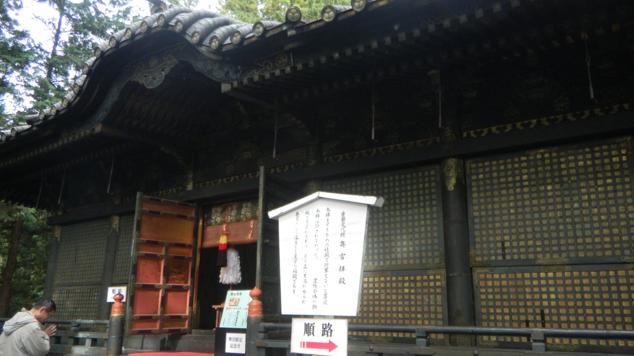 車で行きました。東照宮に近い駐車場は600円ですが、隣の輪王寺駐車場は500円です。払い拝観券には3箇所分のチケットが付いています。表門を入ると左側に神厩舎があり、白馬がいます。この白馬は一日二時間半のみここにいるそうです。私が行った時間は9時半頃でしたから、午前中なのでしょう。そこに、かの有名な三猿が・・・他にもいろいろな行動に、意味付けされていることが解説にあり、うなずいてしまいます。眠り猫の坂下門をくぐって、長い階段を登ると奥宮で、神君家康公のお墓がありました。上りは大変きついです。