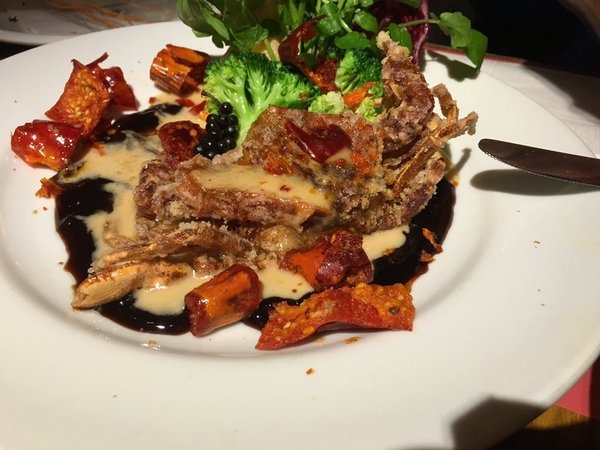 このあたりにいくつかあるお店の本店です。定番ですが、美味しいイタリアンにソフトシェルクラブがお約束。このソフトシェルクラブはなかなかないし、本当に美味しいのです。お客さんが東京に来た時に案内するお店としても肩肘張らないお店なのでおすすめします。