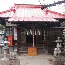 染井銀座商店街近くの住宅地にひっそり建っています。境内は半分以上が駐車場になっていますが、神社は350年ほどの歴史があり、葵の御紋が入った酒を飲む道具や、奉納舞に使われた古い締太鼓と胴長鼓が未だに保存されています。