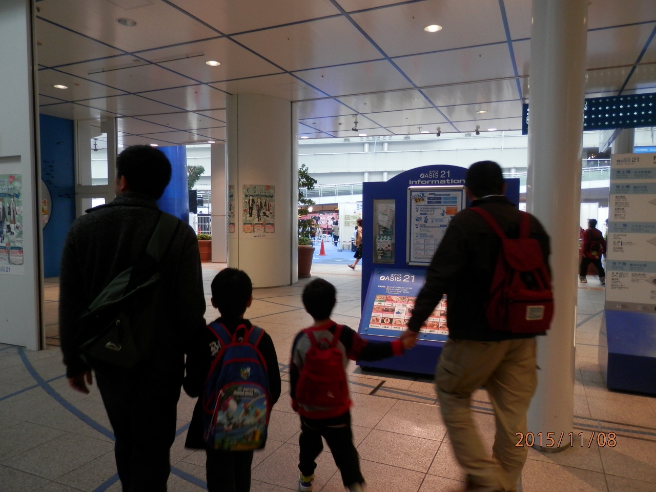 きょうは孫2人つれて雨だから、地下鉄さかえ駅直結のオアシス21「こどものまち」というイベントに出掛ける。地下階だというイベント会場は吹き抜けで空が見える。初めての場所で私にはそれがここだとは最初分からなかった。