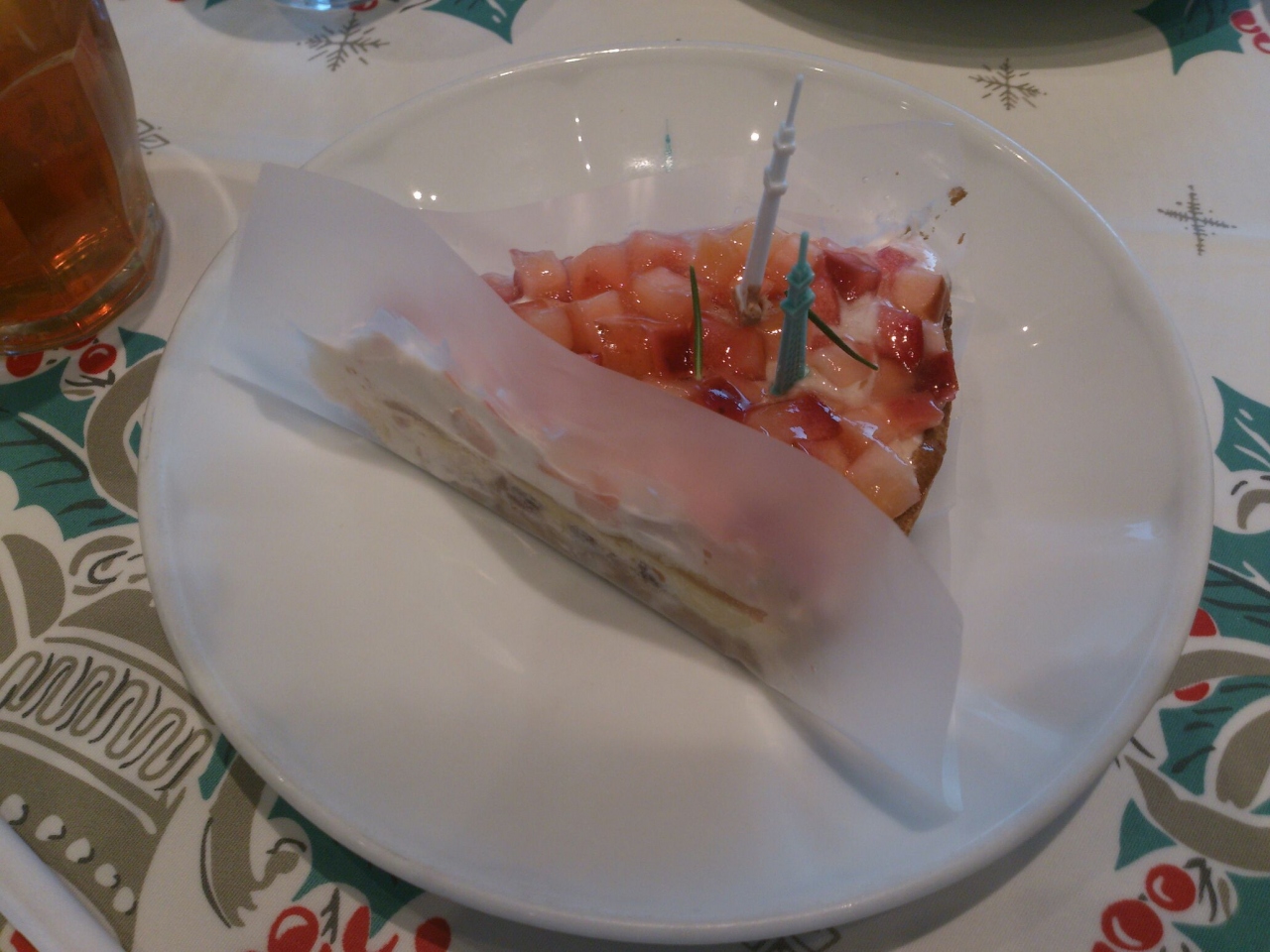 週末土曜日の15時くらいに来店。すでに数組の方が並ばれており30分程度待ちました。甘酸っぱいリンゴのタルトを食べましたがこれが美味しい!普段はあまり甘いものは食べないのですが酸味があるリンゴとよくあっていました。またケーキにはスカイツリーがささっており子供は喜んでいました。