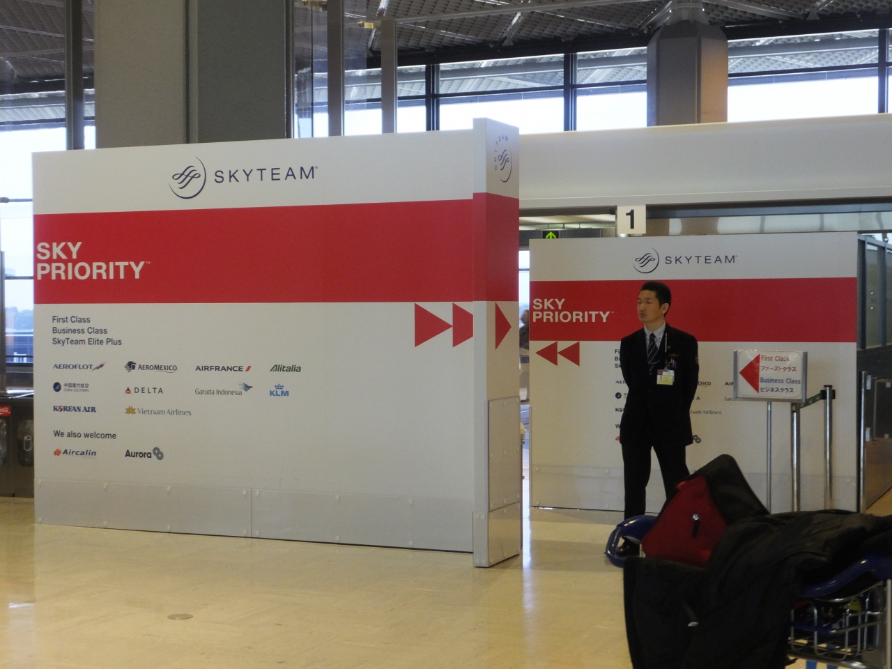両ウィングとも、ファースト・ビジネスクラスおよびマイレージ上級会員用の優先チェックインカウンターと優先保安検査場があります。出発当日はかなり混雑していたので、これらの施設を利用でき助かりました。