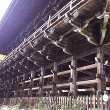 書写山のロープウェイを降りて山上バスに乗りました。降りて坂道を下るとこの摩尼殿の下に着きます。京都の清水寺のような舞台造りになっていて、それは見事な建物です。こんな山上に材料を運ぶだけでも大変なのに感心します。ちょうど紅葉の季節でしたので、舞台から見る紅葉はとても綺麗でした。