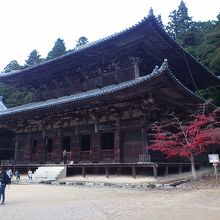 書写山圓教寺の摩尼殿を参拝した後に摩尼殿の裏から続く山道をしばらく行くと、三之堂と呼ばれる3つのお堂がコの字型に並んだ場所に出ます。正面の食堂に向かって右手に建っています。圓教寺の本殿に当たるお堂で、修行の場です。お堂の中に入ることはできません。
