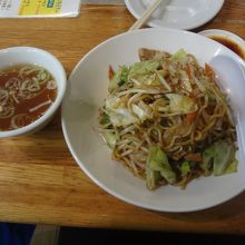 数か月ぶりの札幌やです。夕方の時間、相変わらずサラリーマンが多くて、ちょっとした飲み屋の雰囲気です。こちらは単純に食事なので食事のメニューを注文。濃厚白みそと行きたいところでしたが、ソース焼きそばにしました。実際はわかりませんがスープがない分ヘルシーかなと。キャベツや豚肉、もやしににんじんと具材が豊富です。麺やソースともうまく絡みあって美味しかったです。ということで意外におすすめの一品かもしれません。