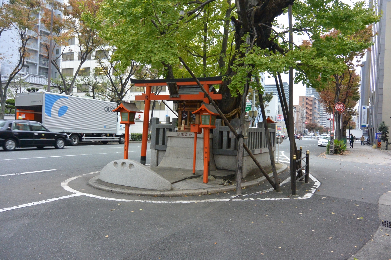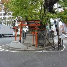 道路の真ん中に島のように残されたイチョウの大木とお社。区画整理をして道路を作ったときに木を切り倒そうとしたら作業員に死傷者が相次いで、そのままにした・・ということです。事の真偽はわかりませんが、道路としてはとても使いづらい形にもかかわらず、今、現にこのような形で残っているということが何よりの証拠かもしれませんね。