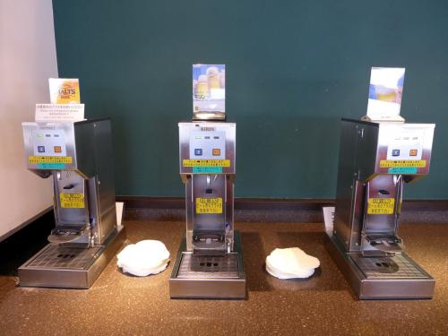 食べ物は殆ど無いに等しいですが、飲物は豊富に揃い、生ビールはサントリーモルツ・キリン一番搾り・アサヒスーパードライのサーバーがあります。