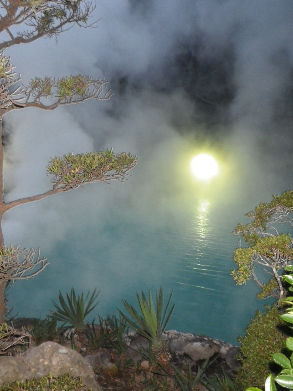 可能であれば、思わず入りたくなる様なきれいな色をした温泉がふつふつと湧き、もうもうと湯気を出しています。