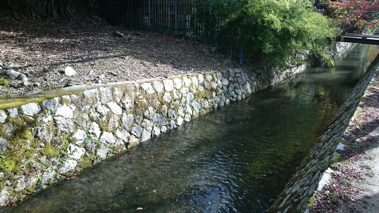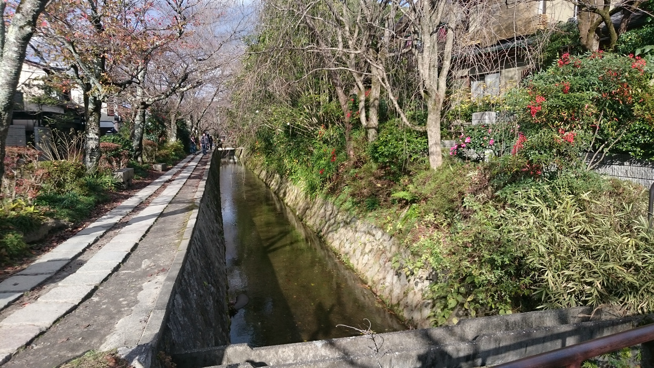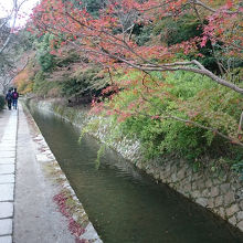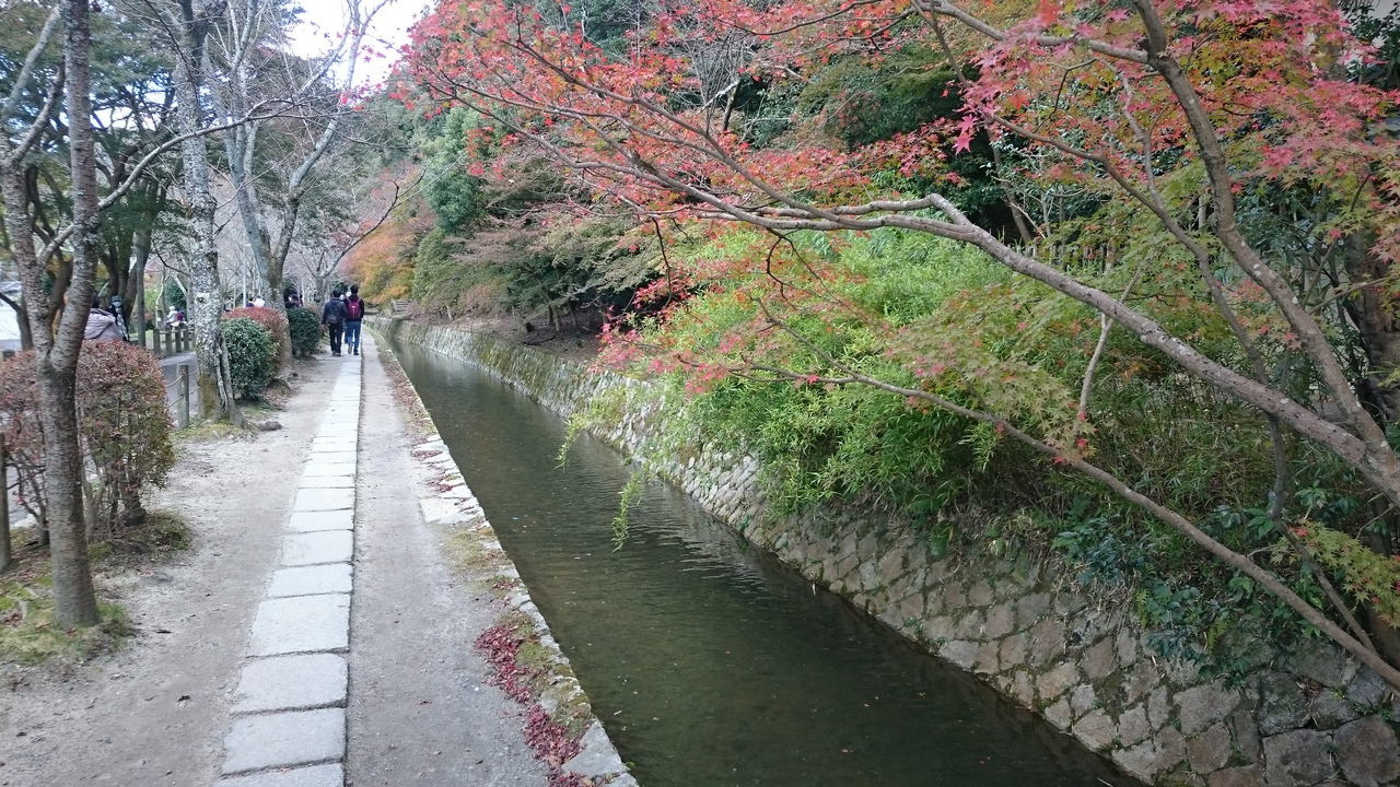 哲学の道は川が流れておりその横を通りながら、紅葉などを眺め、紅葉はもう終わりかけでしたが、でもきれいでした。