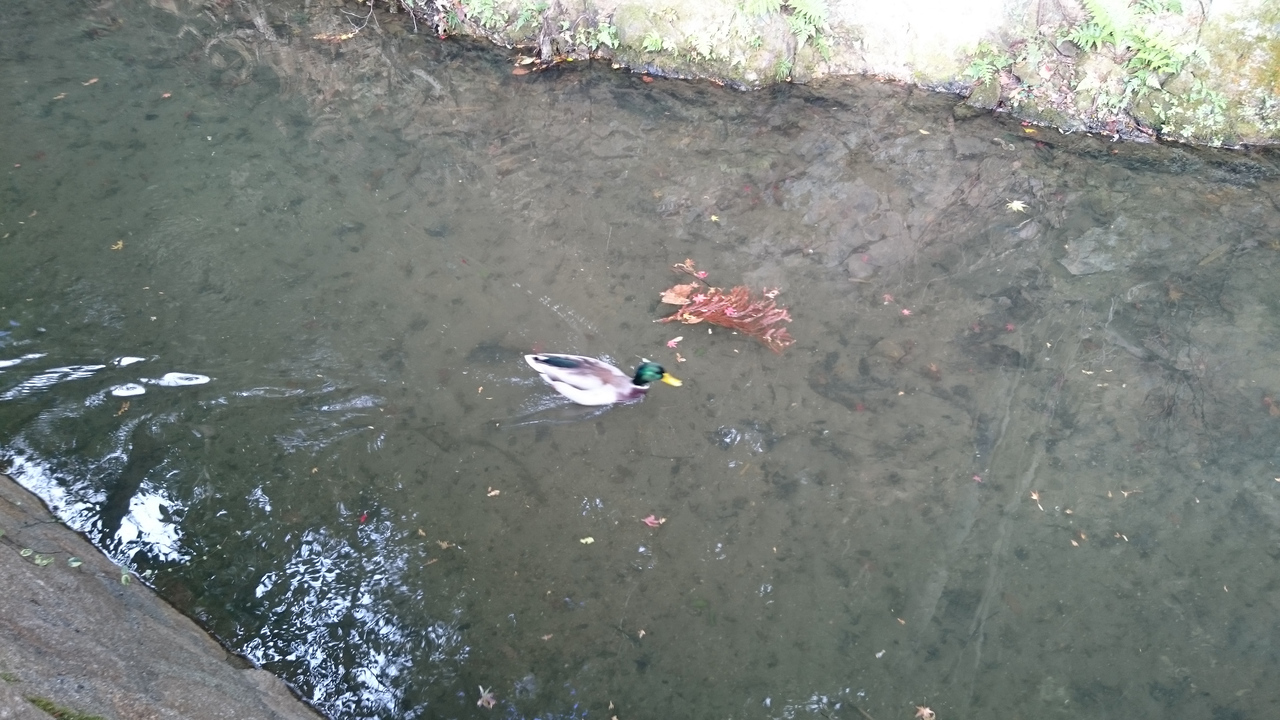 鴨が泳いでいたり魚が泳いでいるのを見ながら、歩くととても気持ちよかったです。