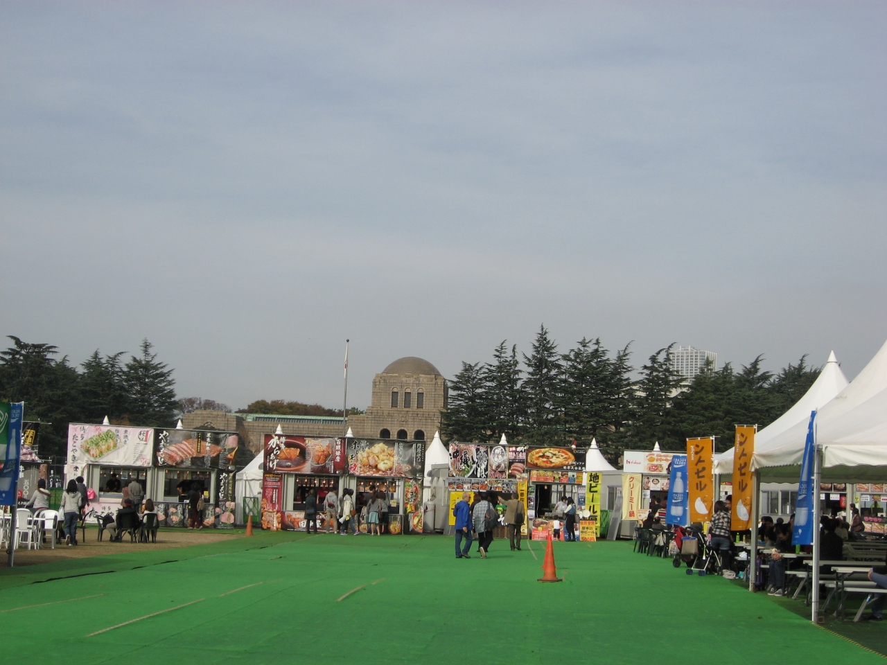 毎年11月下旬から12月上旬まで開催されているイベントです。沢山のお店が出ていて会場内にはテーブル・椅子がありますのでその場で食べられます。お腹がいっぱいになったら青山までのイチョウ並木を歩きながら鑑賞できます。ただ、凄く混みます。